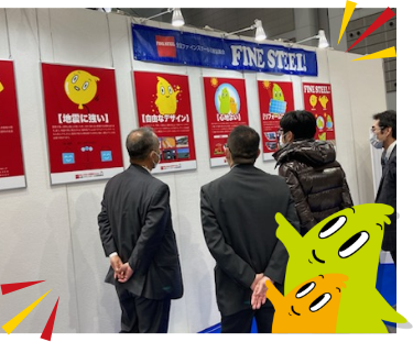 | | | 今回は家族づれをターゲットに従来の展示物に加えおもちゃすくいを企画。また、パネルも目立つようにしたところ 多数のご家族に立ち寄っていただき、今まで以上に成果が出ました。 さらに、比較模型・ミニチュア屋根・なども大活躍。 一般の方に、鉄の軽さによる耐震性や意匠性の良さなどを直に伝える事が出来た良い機会になりました。 今後も、全国ファインスチール流通協議会ブースに気軽に立ち寄ってもらえるよう頑張っていきたいと思います!